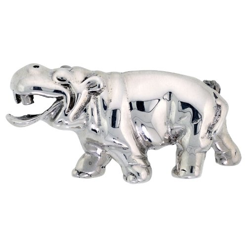 Sterling Silver Happy Hippo Brooch Pin, 1 7/8 inch (48 mm) wide: Features !